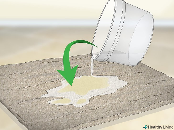 Налийте частину розчину безпосередньо на пляму. пляма повинна бути повністю покрита розчином. Постарайтеся, щоб на чисті ділянки килима не потрапило багато розчину. [5]