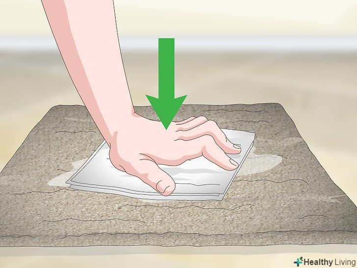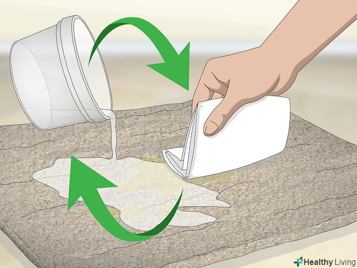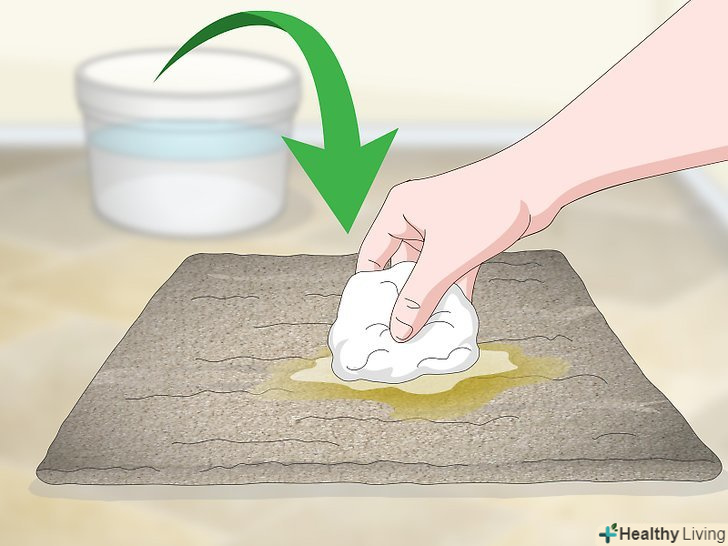 Накрийте пляму ганчіркою, змоченою в оцтовому розчині. сильно натискайте на ганчірку, щоб розчин глибоко вбрався в пляму. Не тріть пляму ганчіркою. [4]
