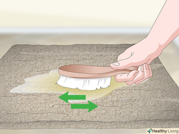 Втирайте розчин в пляму за допомогою щітки для килима. міцно притисніть щітку до килима і рухами взад-вперед обробіть поверхню плями. Якщо у вас немає підходящої щітки, можна скористатися зубною щіткою.