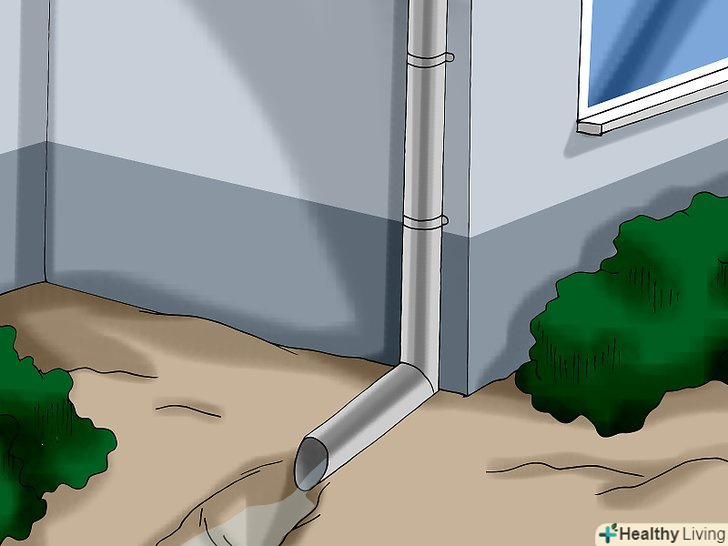 Забезпечте відведення води від будинку. Вода може проникати в будинок зовні. Вирішіть проблеми, щоб захистити житло від вологи. Усувайте витоку на даху і в інших місцях, а також забезпечуйте відведення води від будівлі. [8]- Можна встановити додаткові ринви для відведення дощової води.