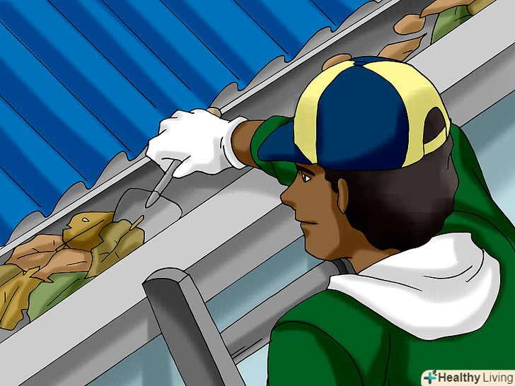 Чистіть і ремонтуйте жолоби. вони є важливою частиною системи, яка забезпечує відведення води, тому жолоби завжди повинні бути чистими і цілими. Виконуйте очищення кожної осені і навесні, щоб видалити бруд, сміття, листя та інші засмічення. [9]- Своєчасно усувайте всі витоки у жолобах. При необхідності замінюйте пошкоджені секції.