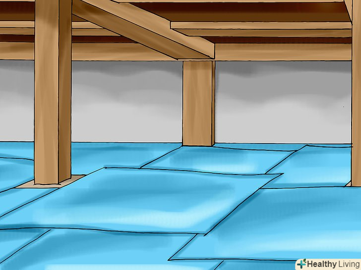 Встановіть листи пластику в технічному підпіллі. у таких місцях може виникати цвіль, оскільки волога з грунту сприяє постійній вогкості. Спробуйте висушити приміщення вентиляторами і накрити землю листами пластику. [10]- Таке рішення не обов'язково повністю захистить будинок від вологи, але запобіжить появі цвілі в підпіллі.