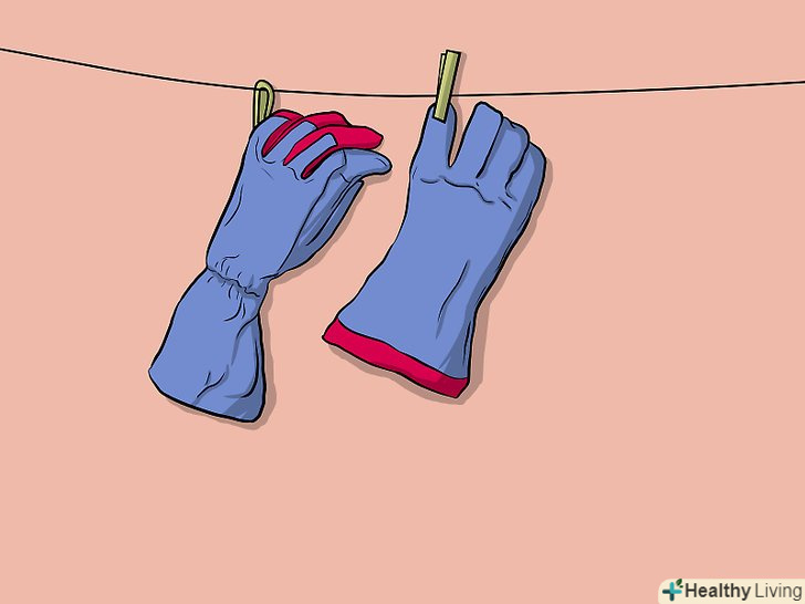 Провітрюйте їх після кожного використання. оскільки ви не будете прати рукавички після кожного використання, не залишайте їх в сумці або шафці. Візьміть їх додому і повісьте на білизняний мотузці або стійці для сушіння білизни, щоб провітрити їх. Дозвольте потоку повітря висушити піт і іншу вологу, щоб уникнути накопичення неприємного запаху. [14]