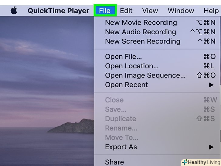 Відкрийте QuickTime.на панелі Dock натисніть на іконку програми QuickTime у вигляді символу "Q". Якщо її там немає, клацніть двічі по іконці QuickTime в папці»програми".[7]