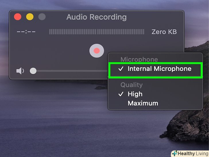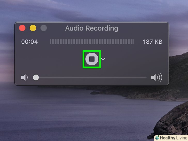 Зупиніть запис, коли закінчите.коли запис буде завершено, натисніть кнопку "Стоп «на магнітофоні, а потім — червону кнопку» Записати" у вікні QuickTime, щоб зупинити запис. Запис буде збережено у вигляді аудіофайлу на робочому столі Mac.