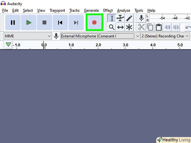Натисніть кнопку "Записати". це червоне коло у верхній частині вікна Audacity. Audacity почне запис.