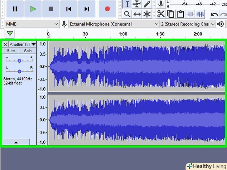 Натисніть кнопку відтворення на магнітофоні.коли ви включите магнітофон, в центрі вікна Audacity повинна з'явитися звукова хвиля.