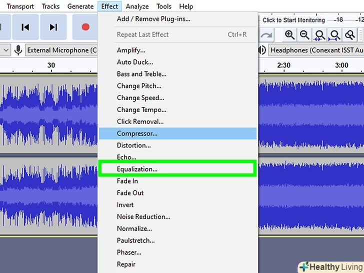 Використовуйте еквалайзер (EQ).залежно від ваших динаміків, їх налаштувань, а також якості самої звукової системи, вам може припасти до смаку настройка звуку за допомогою еквалайзера. Однак врахуйте, що настройка еквалайзера, як і застосування стиснення, є справою смаку. Налаштування еквалайзера дозволить музиці добре звучати на конкретно вашій системі, але на іншій системі запис може здаватися спотвореною.[10]