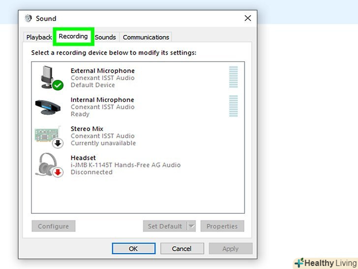 Відрегулюйте рівень звуку на комп'ютері. якщо ви хочете збільшити (або зменшити) гучність запису, зайдіть в Налаштування звуку:[5]- Windows — Відкрийте меню «Пуск» , введіть звук, виберіть "Звук", перейдіть на вкладку "Запис«, двічі клацніть по входу магнітофона, перейдіть на вкладку» Рівні «і посуньте повзунок» мікрофон" вліво або вправо, щоб збільшити або зменшити гучність. Коли закінчите, натисніть " OK " в обох відкритих вікнах.