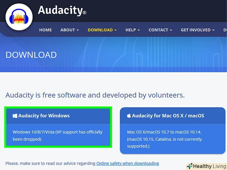 Скачайте і встановіть Audacity.Audacity-це безкоштовна програма, яка за допомогою декількох налаштувань дозволить вам записувати лінійний звук. Щоб встановити її, виконайте наступні кроки:- Пройдіть за наступною адресою в браузері:https://www.audacityteam.org/download / .