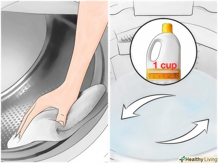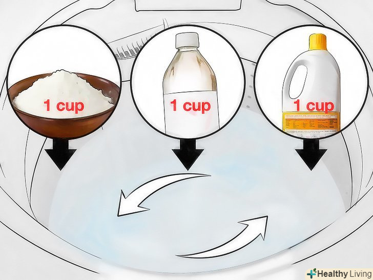 - Виперіть рушники. завантажте брудні рушники в пральну машину і запустіть режим прання з найвищою температурою. Додайте приблизно один стакан білого оцту і один стакан харчової соди. [1]