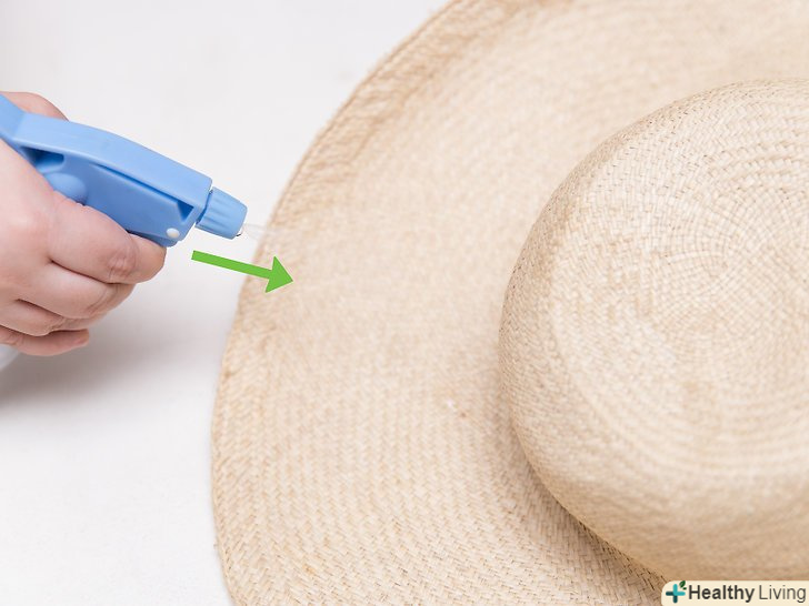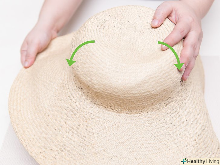Зволожуйте капелюх водою. якщо відпарювання капелюхи вам не допомогло, то можна спробувати зволожити капелюх водою. Даний метод особливо корисний в тому випадку, коли зім'ятими виявилися поля солом'яної капелюхи . Обприскати капелюх водою з пульверизатора. При висиханні солома повинна придбати первісну форму, так як волога робить її більш пластичною.- Вам необхідно лише скропити капелюх водою, але якщо це не допоможе, то можна опустити її тулію в миску з теплою водою. Капелюх при виправленні форми не повинна бути занадто сухою, інакше солома може зламатися.