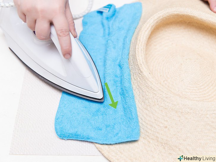 Пропрасуйте капелюх праскою. покладіть поля капелюхи на край прасувальної дошки тильною стороною вгору. Накрийте їх вологою ганчіркою. Налаштуйте на прасці досить високу температуру.- Пропрасуйте поля через вологу ганчірочку. Робіть це дуже обережно і швидко, не допускайте прямого зіткнення праски і капелюхи. Це дуже важливо, так як ви можете обпалити солому.