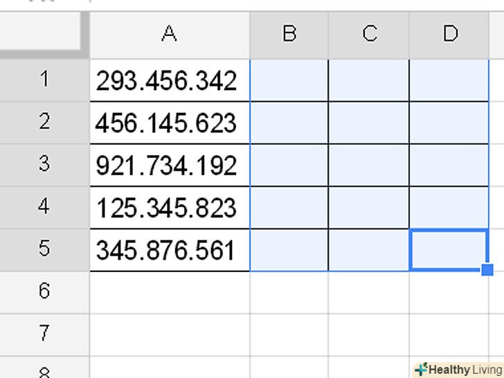 Введіть інформацію, яку хочете розділити. У першій колонці введіть дані. Ви можете швидко розділити списки даних, якщо використовується один і той же роздільник. Роздільник-це символ, який є в кожному записі. Це може бути пробіл " ", точка ".", кома", " або будь-який інший загальний символ.