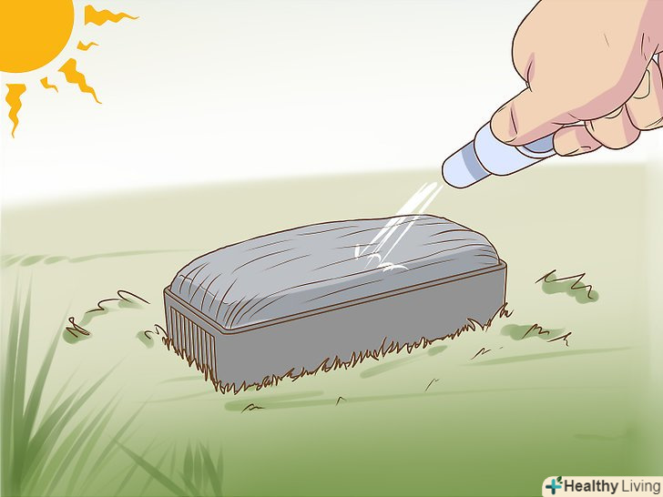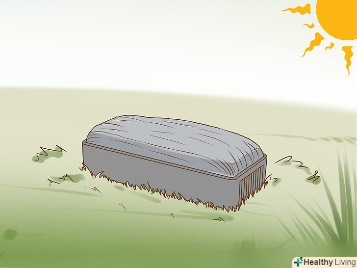 Покладіть губку на сонце. покладіть губку-стирач на сонячне місце і залиште на 1-2 години. Не намагайтеся користуватися губкою, поки та повністю не висохне. Тим часом приберіть садовий шланг на місце. [6]