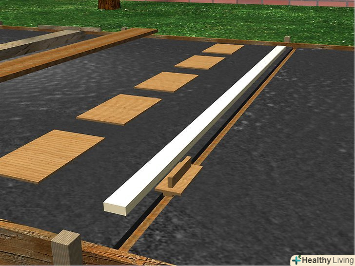 Встановіть «плаваючу форму» або «трубковий шаблон» по всій довжині укладеного бетону. це керівництво допоможе тримати шаблон на правильній висоті, щоб бетон в результаті вийшов рівним. Це може бути дошка 2х2 або 4-5 см, металева труба, встановлена поверх підпірок і яку можна прибрати з бетону після заливки першої секції. З колод 2х2 просто відріжте 2х2 підпори достатньої довжини, щоб щільно вбити в грунт по нижньому краю форми. Трубковий шаблон може бути угвинчений в маленькі металеві або дерев'яні підпори таким же способом, використовуючи мотузку, натягнуту навколо зовнішніх стінок опалубки для збереження правильного підняття.