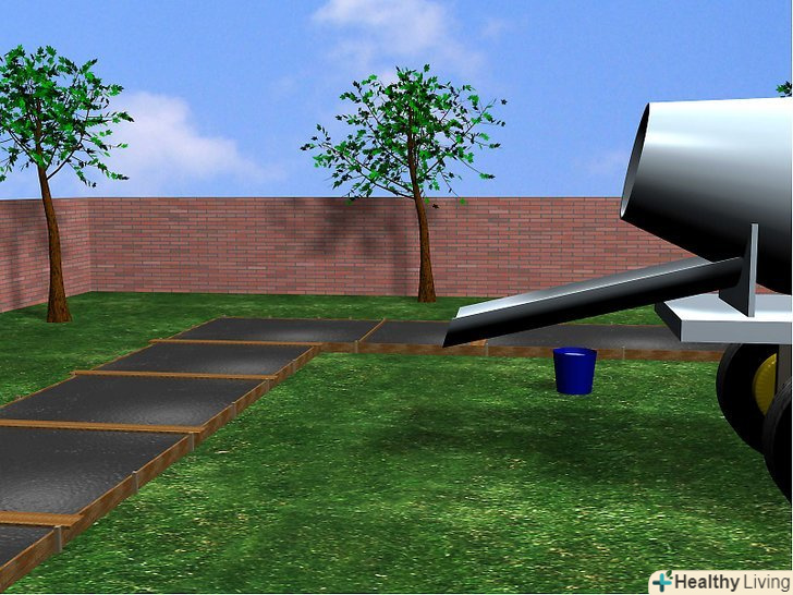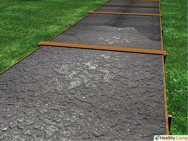 Зробіть це разом з помічниками. Вам будуть потрібні, щонайменше, 3 фізично міцних людини, щоб допомогти з заливкою бетону. Включаючи 2 людини, які будуть тягнути шаблон, і одного керуючого потоком бетону, що поміщає матеріал на однорідну глибину поверх шаблону.