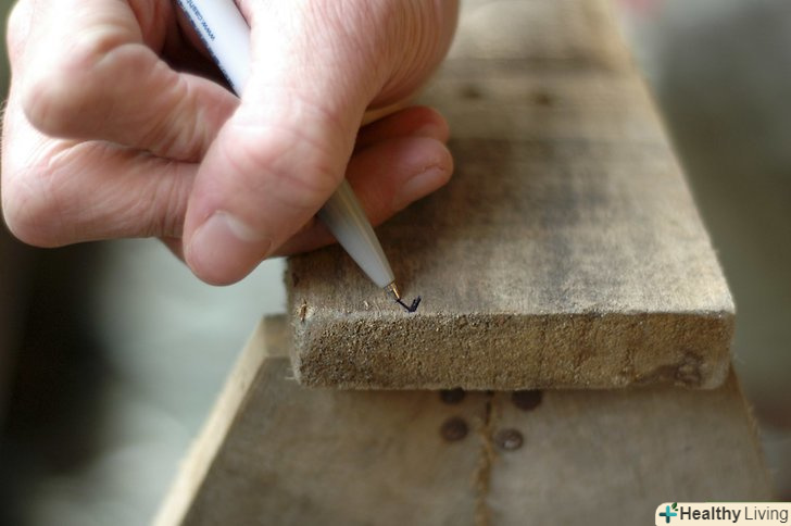 Відзначте місце для розпилу. розмістіть рейку всередині стусла так, щоб пила пройшла точно через мітку. Для того, щоб поставити позначку, не обов'язково прокреслювати лінію. Буде досить позначки у вигляді галочки. Галочка буде тим самим місцем, де потрібно буде пиляти. Перед тим, як пиляти там, де у вас стоїть відмітка, зробіть невелику зарубку.