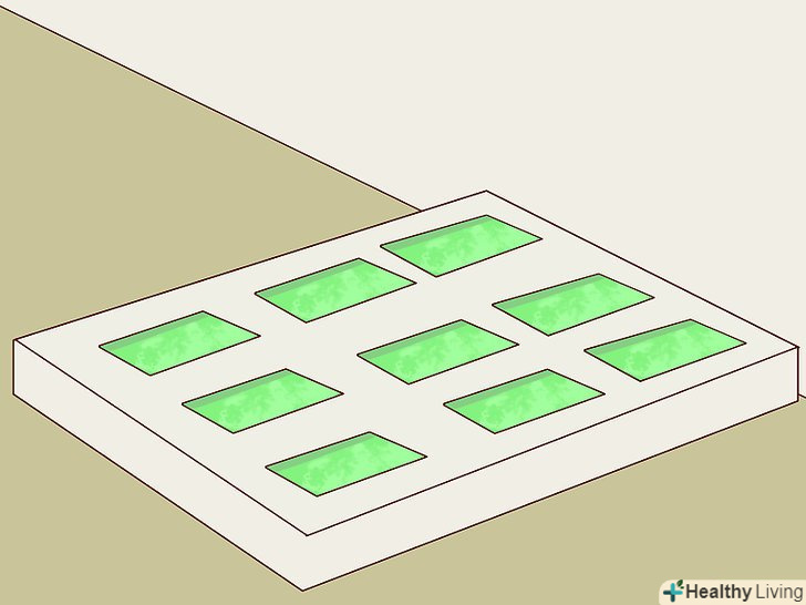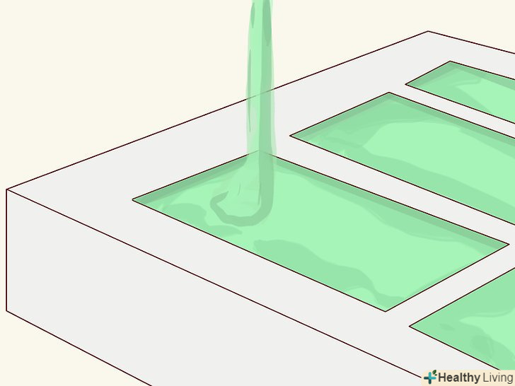 Налийте розчин у формочки. знайдіть або виготовте формочки відповідного розміру і форми. Відзначте рівень на кожній формочці, щоб камені мали однакову товщину. Заготовте стільки заливальних форм, скільки каменів вам знадобиться. Розчин в тачці висохне швидше, ніж ви встигнете підготувати другу партію для заливки. [7]