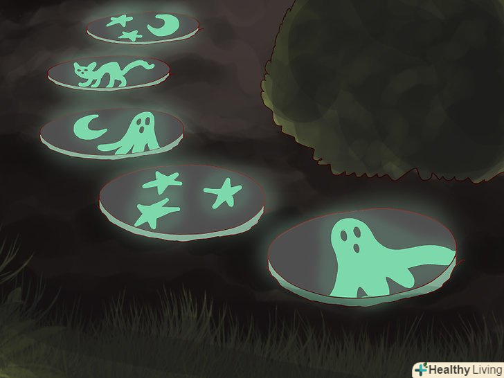 Розкладіть камені. знайдіть відповідне місце для розміщення світяться в темряві каменів. Врахуйте, що будь-які нічні джерела світла (наприклад, освітлення на ганку) приведуть до ослаблення світіння. Щоб домогтися максимально яскравого світіння, викладіть камені уздовж темної, відкритої доріжки (наприклад, доріжки через сад).