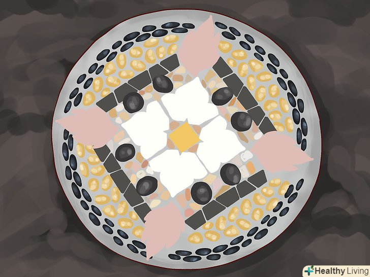 Вставте в камені з бетону якісь дрібнички або невеликі предмети. в процесі виготовлення каменів з бетону в них можна вставити невеликі предмети. При висиханні бетон затвердіє навколо цих предметів. Коли бетон повністю затвердіє, вставлені предмети зафіксуються в ньому. [11]- У бетон можна вставити такі предмети, як дрібні камінчики, дрібнички, невеликі прикраси або особисті речі.