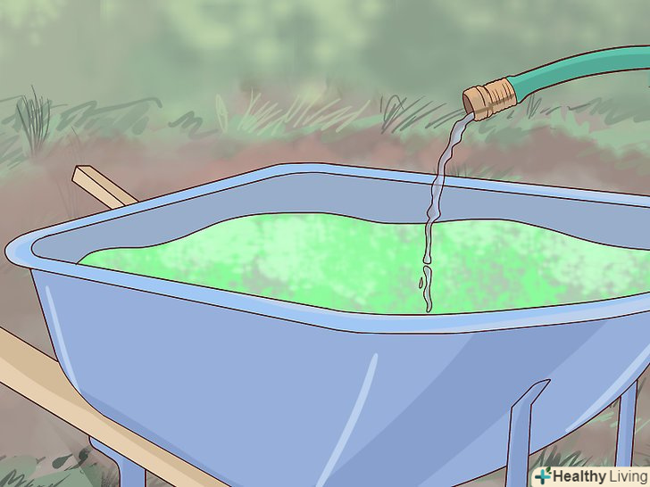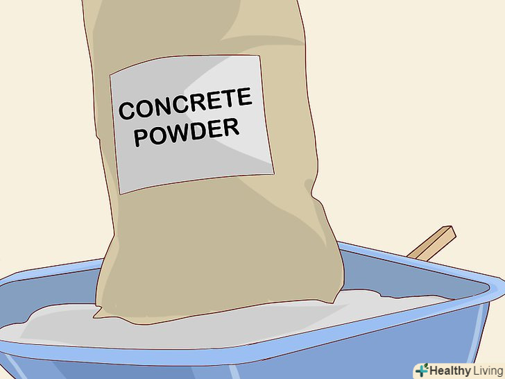 Додайте води. на мішку з-під цементу повинно бути сказано, скільки води необхідно додати. Лийте воду повільно, одночасно помішуючи розчин. Консистенція цементного розчину повинна бути досить рідкою - як сметана. [6]