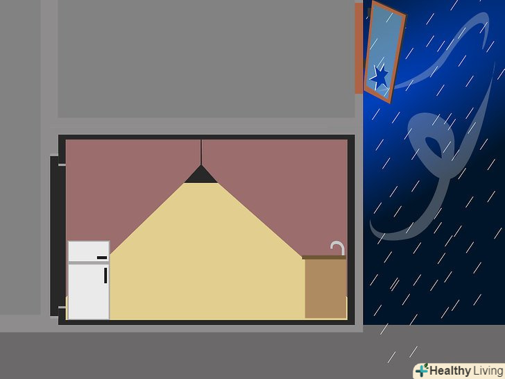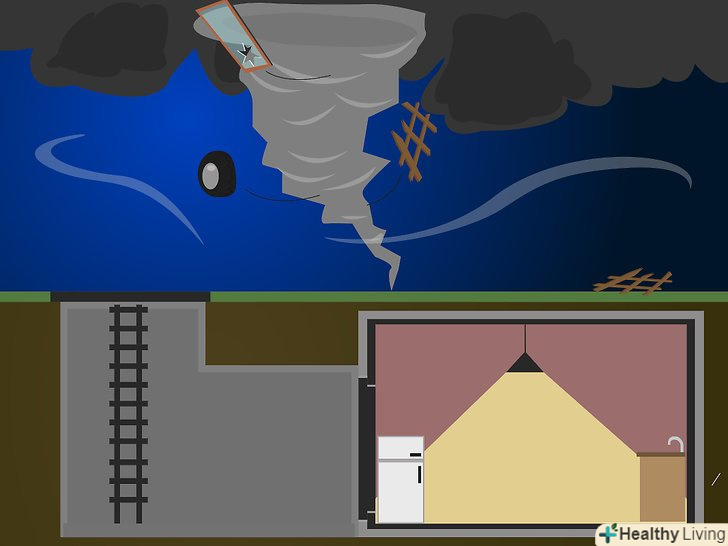 Переконайтеся, що кімната зможе встояти не тільки перед сильними поривами вітрами, але також і перед сміттям, який буде розлітатися навколо.- Переконайтеся, що кімната-притулок надійно закріплена, що вона не підніметься і не перевернеться.