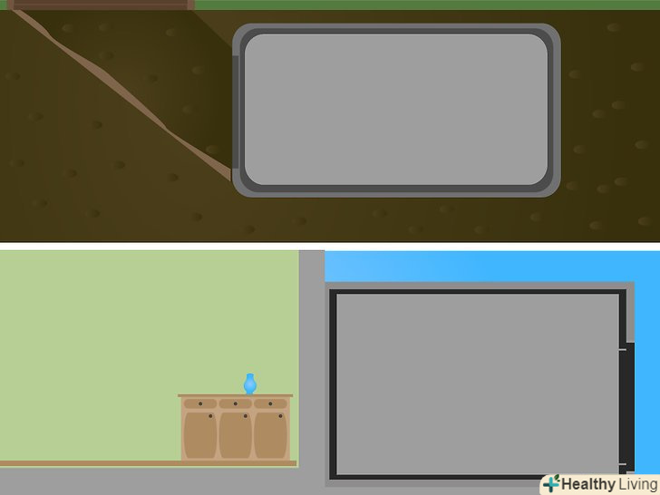 Подумайте про те, яку кімнату-притулок ви хочете побудувати.- Притулок для двору призначений для того, щоб його закопати і встановити під землею. Одна зовнішня двері відкривається над землею, і ви можете придбати таке, в яке поміститься необхідна кількість людей. Краще вибирати сталь, тому що сховища з бетону або скловолокна схильні до ризику утворення тріщин.