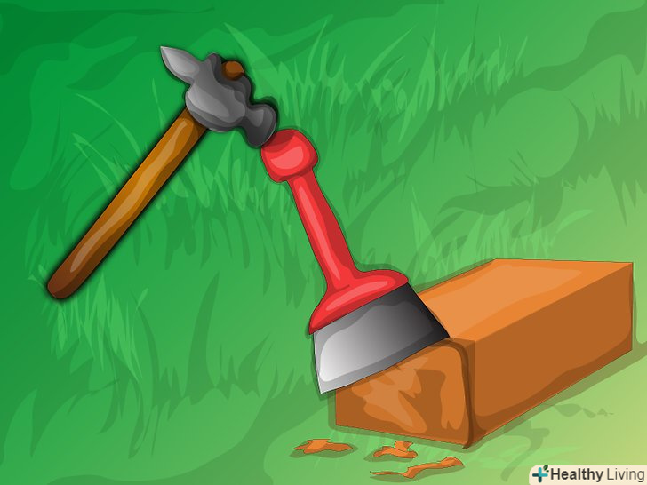 Користуючись стамескою або кирочкою на зворотному боці молотка, зачистіть поверхню відколу цегли.