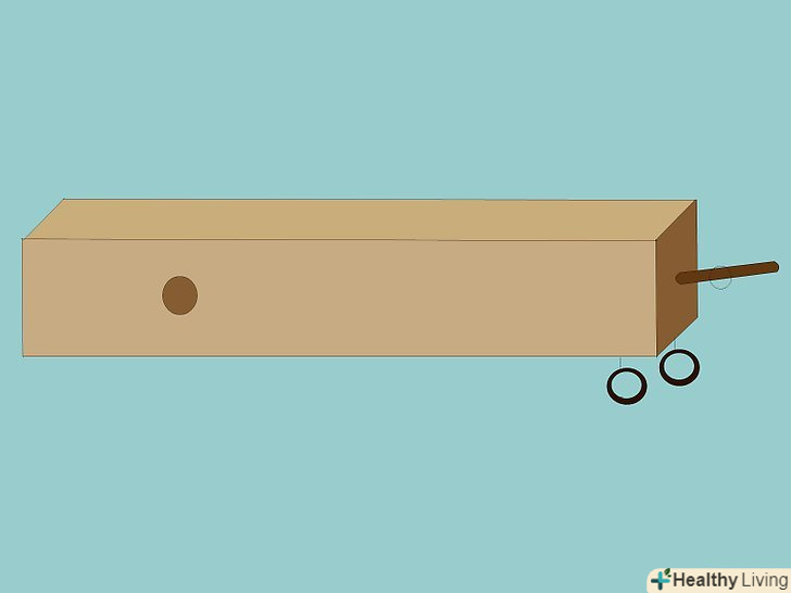 Дістаньте вісь. вам знадобиться або металевий стрижень або дерев'яний дюбель такої ж довжини, як і ширина з'єднання деталей або трохи довше. З'єднання повинно бути достатньо міцним, щоб витримати вагу важеля, який ви плануєте запускати, і противаги.- Шматок арматури зміцнить вісь, але ви також можете використовувати металеву частину викрутки або вісь сміттєвого бака на коліщатках. Для катапульт досить невеликих розмірів, ви можете використовувати міст від іграшкової машинки. Коли ви вирішите, що ви будете використовувати в якості осі, виміряйте її діаметр.