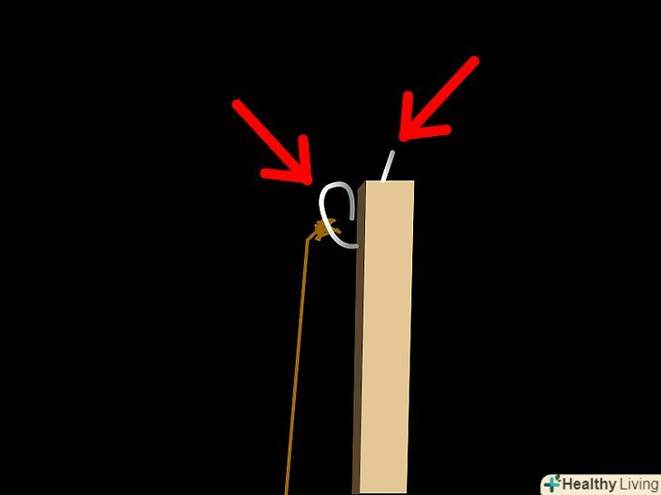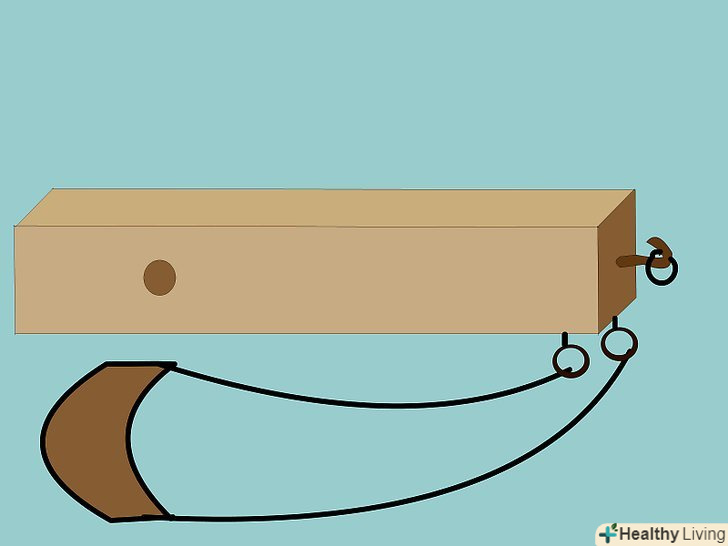 Помістіть пращу на метальний гак. пропустіть один кінець мотузки через гак, якщо ви не хочете фіксувати її на гаку.
