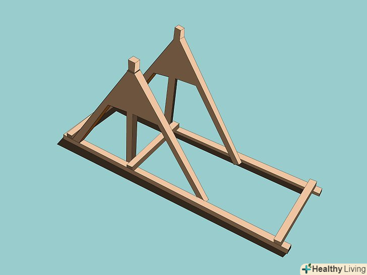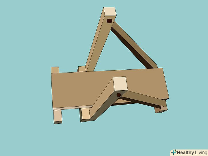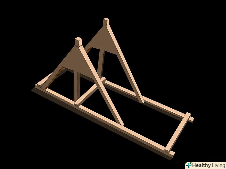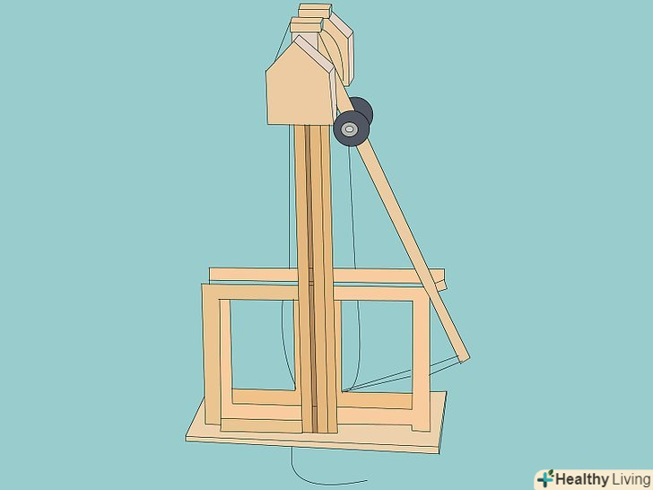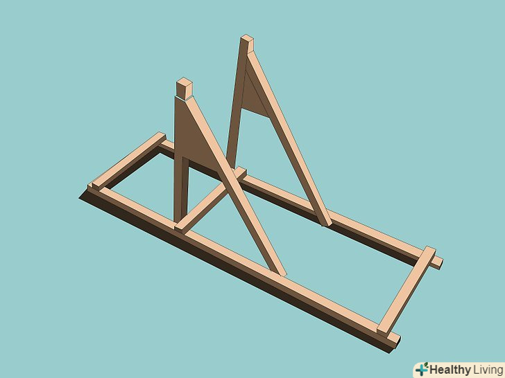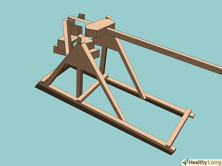 Зберіть каркас катапульти. приєднайте 3 поперечних конструкції до основи використовуючи клей, цвяхи, гвинти або болти, в залежності від розміру катапульти. За однією з конструкцій зафіксувати на кінцях каркаса, а третю просто над стійками.- Для настільної катапульти, щоб перешкодити її перевертання під час запуску, прикріпіть до основи щільний папір або картон. [11]