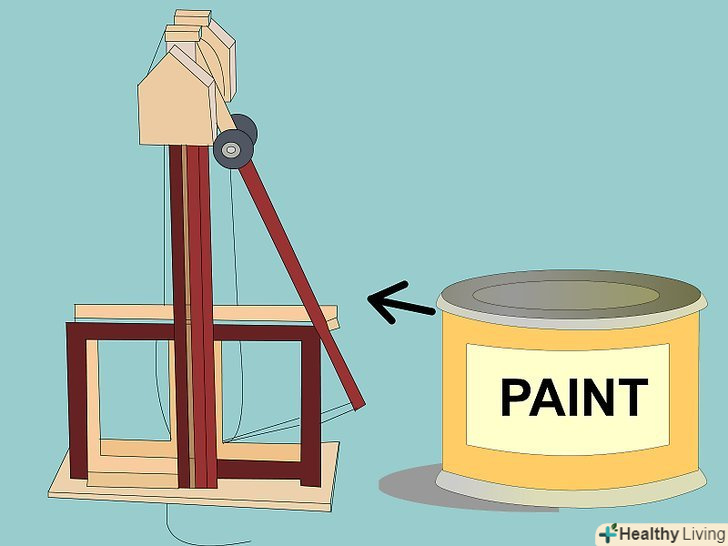 Пофарбуйте і прикрасьте катапульту. якщо ваша катапульта з дерева, то фарбування допоможе захистити його, особливо, якщо ви плануєте зберігати катапульту на вулиці. Ви можете прикрасити підпірки історичними прапорами, гербом вашої родини або логотипом військово-історичної спільноти, до якого ви ставитеся.