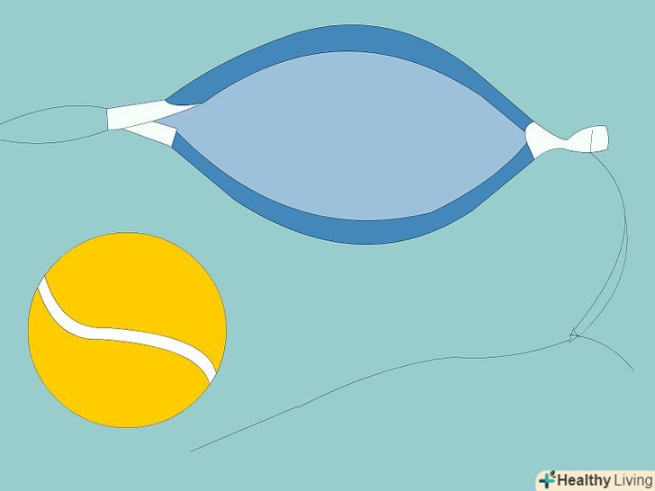 Зробіть пращу. Візьміть шматок щільної тканини (для великої катапульти мішковини) і складіть її навпіл. Прісоберіте кути з двох сторін і зв'яжіть їх мотузкою, шнуром або мотузкою, утворюючи мішок. Зробіть петлі на вільних кінцях мотузки, щоб вам було зручно одягати їх на гак на метальному кінці важеля.- Якщо побажаєте, то ви можете зафіксувати пращу за допомогою мотузки на гаку, прив'язавши другий кінець до петлі з тонкого дроту, тоді праща буде легше відкриватися при запуску снаряда. Ви можете також прив'язати обидва кінці мотузки до петлі з дроту, щоб було легше одягати і знімати пращу з гака.