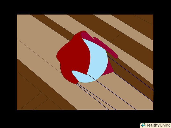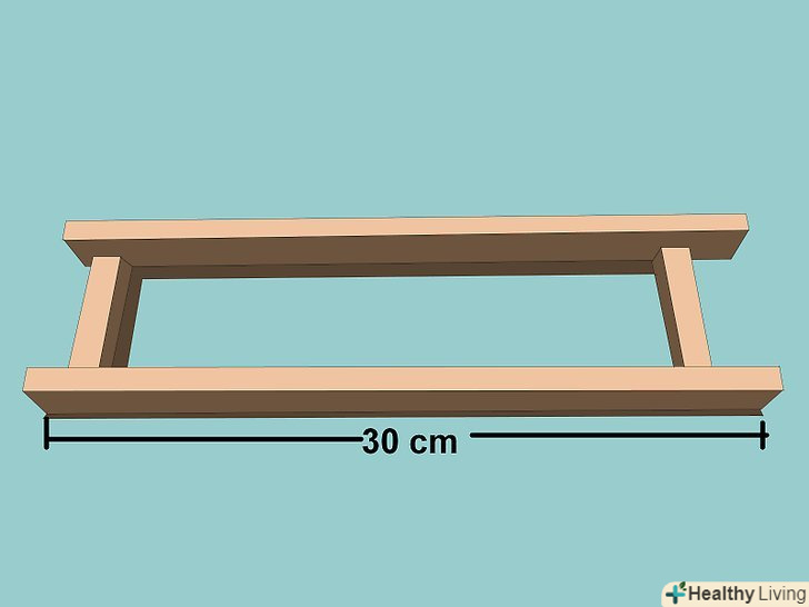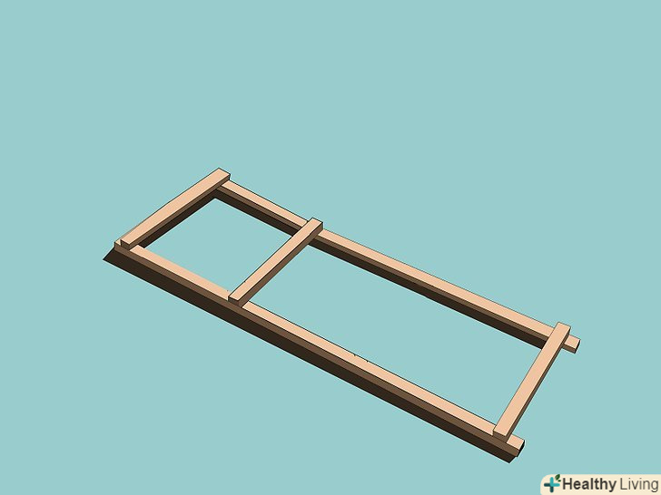 Закріпіть стійки на довгій частині підстави. Виміряйте 1/4 відстані від одного кінця однієї з довгих частин основи і відзначте його. Розмістіть кінець однієї зі стійок навпроти цієї позначки і приклейте її на це місце, після чого закріпіть цвяхами або шурупами. Виконайте теж з другої стійкою і довгою деталлю підстави, використовуючи першу стійку як підказку. [7]- Прикріпіть підпори до довгих деталей підстави і стійок. покладіть одну із зібраних частин на бік так, щоб накрити її зверху підпіркою. Вирівняйте підпору з низом підстави, задньою частиною стійки і похилій до кінця підстави. Приклейте підпірку і закріпіть цвяхами або шурупами.