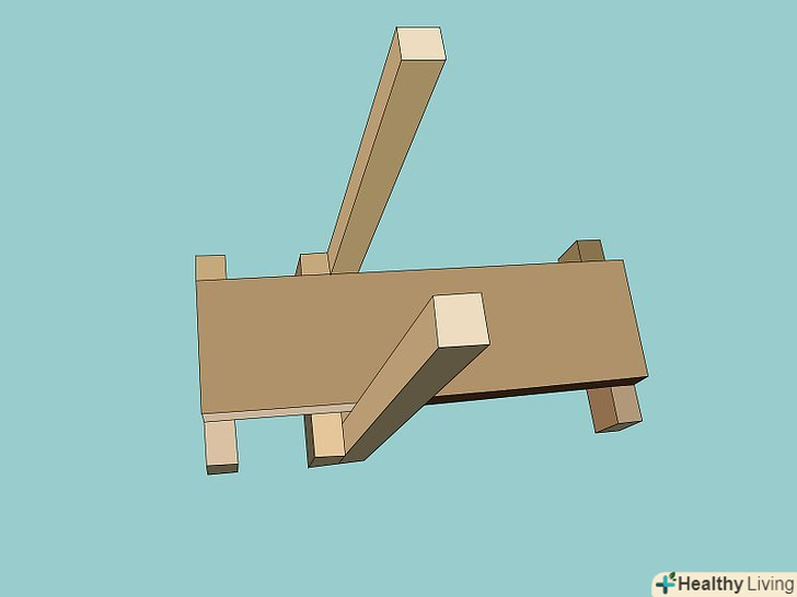 - Для катапульт великих розмірів, в якості заміни підпірки з фанери ви можете використовувати обрізану дошку або обрізати краю кутів по кожній стороні, щоб вийшла прямокутна підпора. [8]