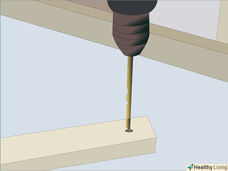 Просвердлите дірки у верхніх частинах стійок. після складання каркаса через них ви пропустите вісь, на якій буде триматися важіль.- Відзначте місце отворів зверху на відстані близько 1/10 від всієї довжини стійки. Вам знадобиться свердло таким же діаметром або трохи більше, ніж Діаметр осі.