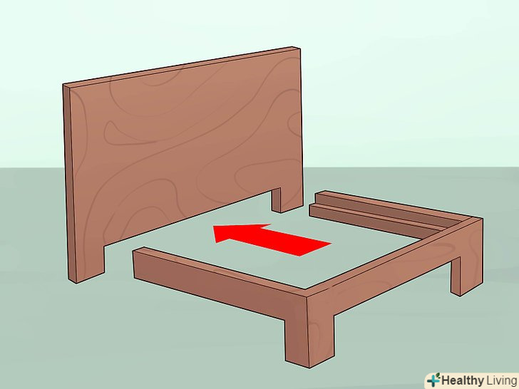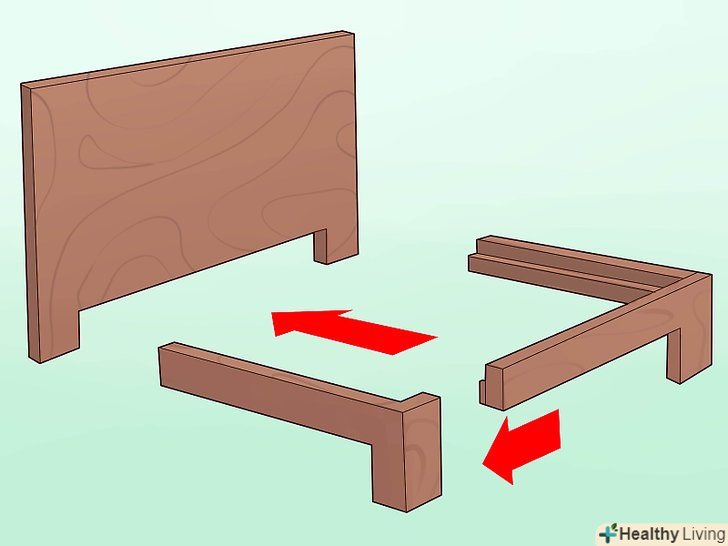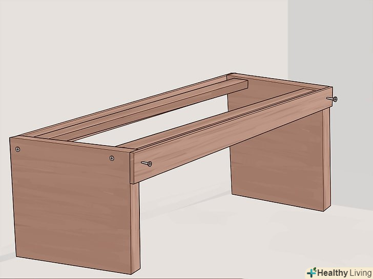 З'єднайте ізножье з підголів'ям. Всуньте дюбелі, завдавши трохи клею для дерева в дірки, і з'єднайте ізножье з підголів'ям. Конструкція повинна почати нагадувати лавочку.