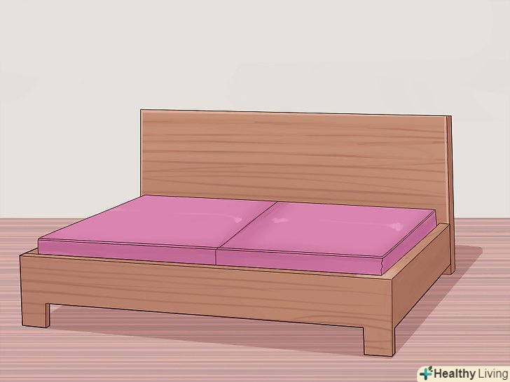 Створіть точки з'єднання ізножья. ви повинні просвердлити дірки по краю, які будуть на рівній відстані один від одного, для дюбелів. Знайдіть дюбелі потрібного розміру і використовуйте свердло потрібного розміру, щоб просвердлити під них дірки. Виміряйте висоту від підлоги до зроблених вами дірок і відстань між дірок. Після зробіть однакові дірки в тому ж місці на передній частині узголів'я.- Кількість і положення дірок залежить від розміру і від стилю ліжка.