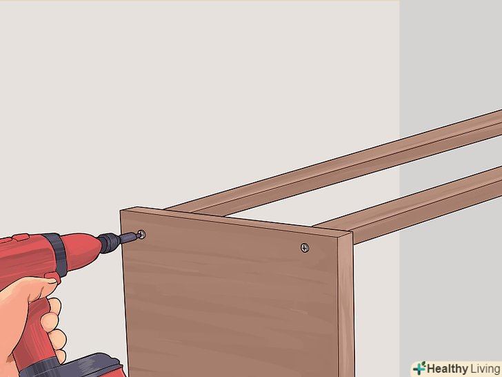 З'єднайте розпірну. З'єднайте шматок 5 на 5 см довжиною в 18.5 см з кожною стороною. Цей 5х5 шматок буде прикріплений в 3.5 см від верху кожного шматка боків. З'єднайте їх, використовуючи гвинти для дерева потрібної довжини, по два гвинти на кожну палицю, щоб гвинти були 3.5 см від кожного 5х5 шматка.