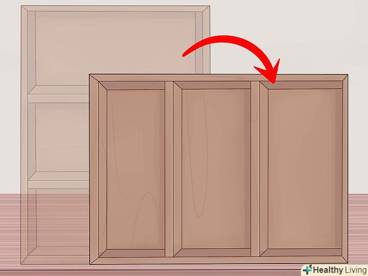 Покладіть шафа на бік. Зберіть книжкову шафу, як зазначено в інструкції, і потім покладіть його набік. Сторона, яка буде на підлозі, в кінці стане сидінням лавки.