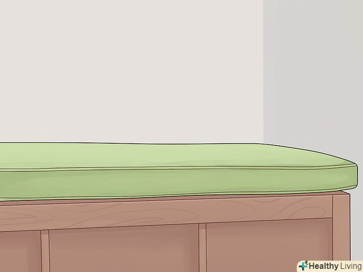 Додайте подушки. або зробіть подушки самі, або купіть плоскі, квадратні подушки, які підійдуть до верху вашої лавочки. Приклейте липучки до верхньої частини лавочки, а іншу сторону липучок приклейте до нижньої сторони подушок.- М'яку, пухнасту сторону липучки найкраще використовувати на подушці, так як їх простіше прати.