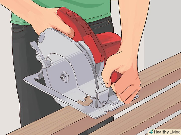 Відріжте шматки для країв лавочки. Візьміть шматок 5 см на 25 см і розріжте його на два шматки однакового розміру, щоб вони були рівні бажаної висоті лавочки. Для цього використовуйте круглу пилу або ажурну пилу.
