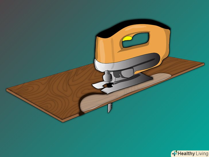 Зробіть пропил.- Якщо у вас лобзик зі стандартним полотном, то дошку потрібно покласти малюнком вниз. Покладіть на неї шаблон нижньою стороною вгору. Переконайтеся, що пропив вийти правильним, коли ви перевернете планку лицьовою стороною вгору. Тримайте лобзик вертикально.