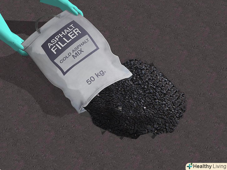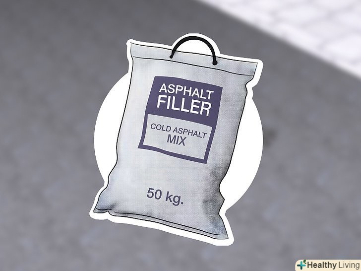 Виберіть асфальтовий наповнювач, який ви будете застосовувати для ремонту. холодний асфальтовий заповнювач (суміш асфальтової смоли і каменів) продається в пластикових мішках по 20 кг, схожих на мішки з цементом, а також, у відрах об'ємом від 4 до 20 літрів.