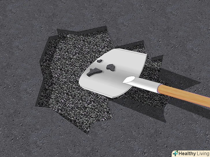 - Якщо хочете, можете підкопатися під асфальтове покриття навколо ями і заповнити цей простір наповнювачем, щоб матеріал латки зміцнив і підтримував ослаблені початковим подією краю ями.