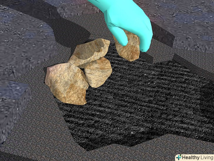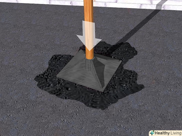 Очистіть яму від шматків бруду та іншого сміття за допомогою садової лопатки, совка або іншого зручного інструменту. якщо дно ями складається з сухого грунту, вам варто зволожити його за допомогою садового шланга, тому що смола хапається лише на вологій землі.