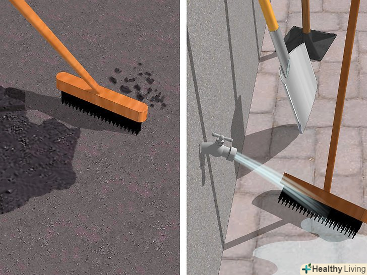 - Великі латки схильні трохи провисати після того, як по них починають їздити машини, так що не бійтеся наповнити середину ями на півсантиметра вище. Автомобільний трафік з часом згладить латку врівень з іншим покриттям.