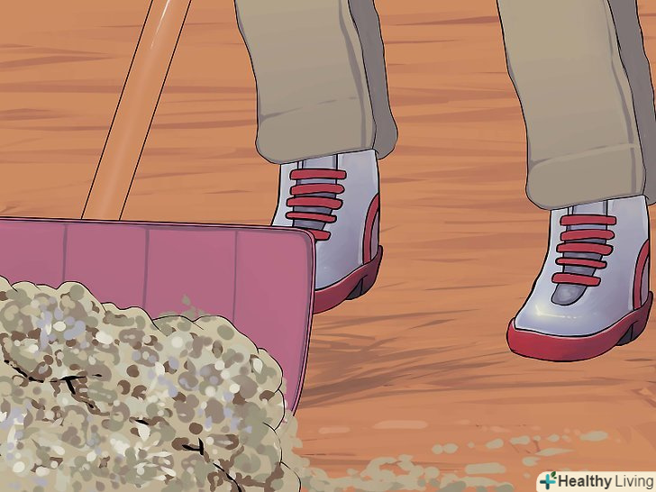 Посипте ділянку щебенем, якщо це необхідно. гола земля в деяких випадках також підійде, але замість цього можна засипати її шаром щебеню, щоб не заносити бруд в будинок і не притоптувати землю навколо навісу. Якщо ви не хочете засипати землю щебенем, можете прикрити її шаром темної бур'яну, щоб запобігти зростанню трави і бур'янів.- Найкраще забетонувати ділянку або побудувати навіс на вже наявній бетонованої майданчику. Це забезпечить його довговічність і міцність.