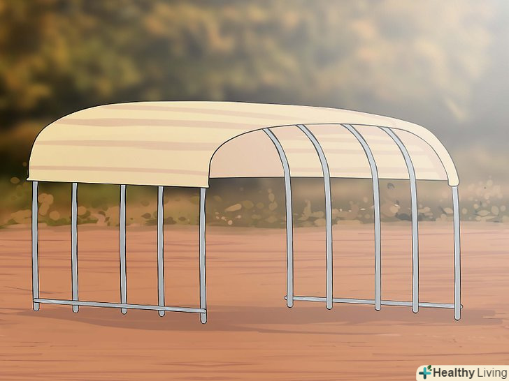 Використовуйте готовий набір для складання навісу. необхідність купувати матеріали і приділяти багато часу зведенню споруди роблять цей проект досить складним, тому вже готовий набір для складання навісу буде підходящим варіантом згідно вашим бажанням і можливостям. [3]- Металеві Набори для складання навісу зазвичай дешевше дерев'яних і доповнені докладною інструкцією по збірці. Такий навіс можна зібрати за день або близько того.